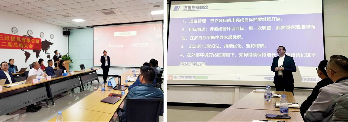 會上,項目老師表示嚴峻的市場環(huán)境決定了企業(yè)必須不斷變革才能持續(xù)發(fā)展。金三維高層在市場競爭激烈的時候選擇與遠大方略合作開啟變革,是站在長遠發(fā)展的角度做出的戰(zhàn)略性決策。通過兩期項目的開展,我們欣喜的看到公司的各個方面都在持續(xù)向好變化,團隊執(zhí)行力與凝聚力也逐漸增強。相信在高瞻遠矚的公司高層與優(yōu)秀員工的共同努力下,金三維能夠在復(fù)雜的市場環(huán)境中盡快調(diào)整好狀態(tài),支撐企業(yè)業(yè)績實現(xiàn)戰(zhàn)略性增長。