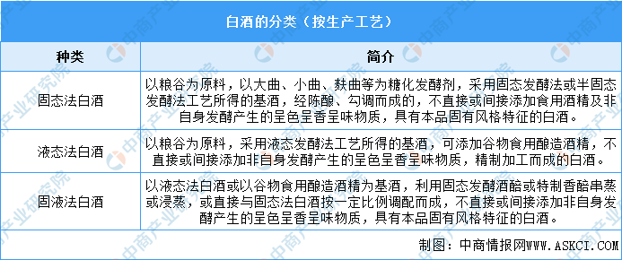 白酒按生產(chǎn)工藝可劃分為三類,分別是固態(tài)法白酒、液態(tài)法白酒和固液法白酒。