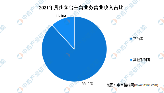從主營(yíng)產(chǎn)品來(lái)看,2021年貴州茅臺(tái)主營(yíng)產(chǎn)品茅臺(tái)酒營(yíng)業(yè)收入為934.65億元,占比88.02%。