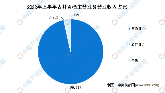 從主營(yíng)業(yè)務(wù)來(lái)看,2021年古井貢酒主營(yíng)白酒業(yè)務(wù)、酒店業(yè)務(wù),營(yíng)業(yè)收入占比分別為96.61%、0.28%。