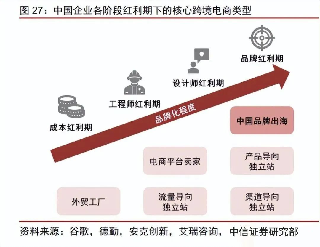早期,憑借國內(nèi)的勞動力優(yōu)勢,中國制造的高性價(jià)比產(chǎn)品快速打開海外市場,但也帶 來了消費(fèi)者價(jià)格敏感、用戶粘性及心智較差等問題。經(jīng)過二十余年發(fā)展,隨著我國跨境電商模式的逐漸成熟、產(chǎn)業(yè)鏈布局的逐漸深入,以及行業(yè)競爭的日益激烈,國內(nèi)跨境電商賣家正在實(shí)現(xiàn)從中國制造到中國品牌的升級,以提升消費(fèi)者心智并強(qiáng)化議價(jià)能力。