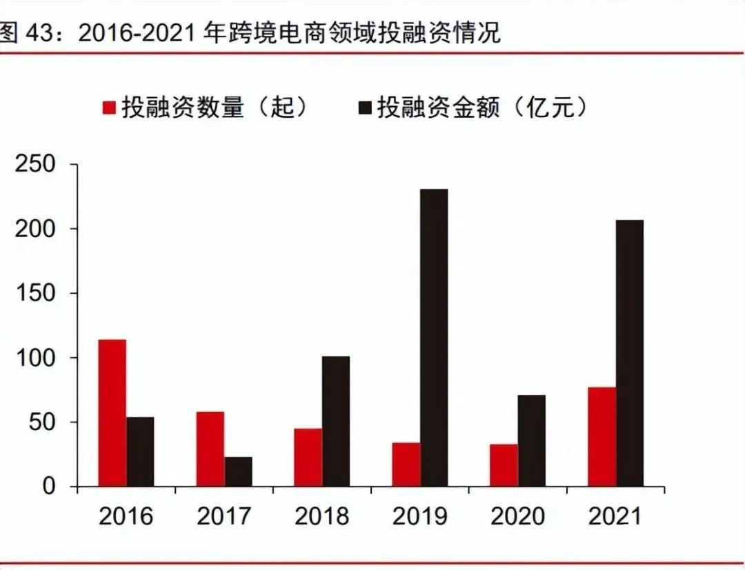 服務(wù)生態(tài)完備,全鏈路賦能跨境賣家。隨著跨境電商行業(yè)整體成熟度和專業(yè)度的提升, 以及行業(yè)競爭的加劇,對賣家的綜合運(yùn)營能力提出了更高的要求,跨境支付、代運(yùn)營、營銷推廣等跨境電商服務(wù)商應(yīng)運(yùn)而生。根據(jù)艾瑞咨詢,2021 年跨境電商領(lǐng)域投融資總金額 達(dá) 207 億元,其中服務(wù)商領(lǐng)域融資事件/規(guī)模占比分別為 65%/34.5%??缇畴娚谭?wù)商生態(tài)的繁榮,有助于增強(qiáng)跨境賣家面向海外市場的競爭力。
