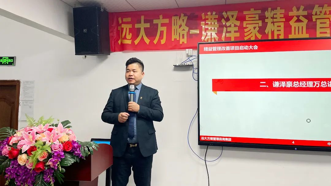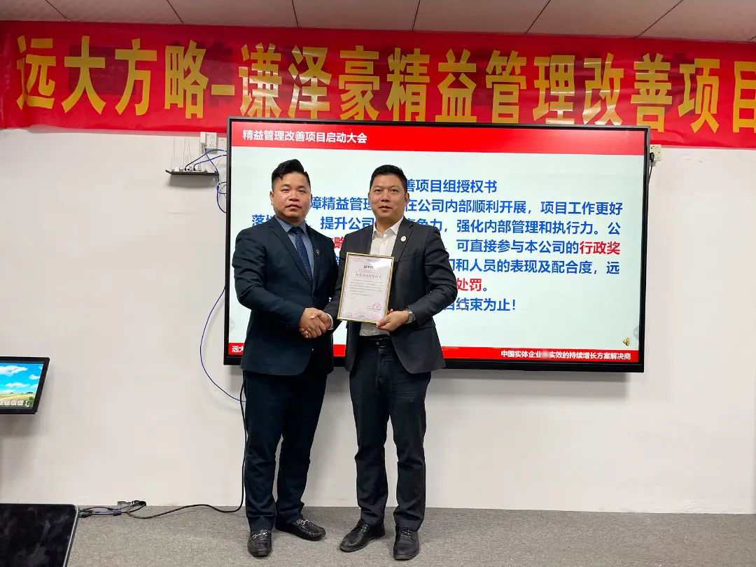 會(huì)議上,項(xiàng)目組老師首先向謙澤豪管理團(tuán)隊(duì)對(duì)遠(yuǎn)大方略的信任表示感謝,企業(yè)經(jīng)營(yíng)的本質(zhì)是以客戶(hù)為中心,圍繞客戶(hù)價(jià)值去建團(tuán)隊(duì)、建流程、搭體系,為客戶(hù)創(chuàng)造更大價(jià)值才能留住客戶(hù),這也是此次企業(yè)開(kāi)啟項(xiàng)目的核心。遠(yuǎn)大方略項(xiàng)目總監(jiān)強(qiáng)調(diào)了此次項(xiàng)目的兩個(gè)重要思想,一是全員參與,所有部門(mén)所有員工都要參與此次改善;第二個(gè)就是要持續(xù)改善,從量變到質(zhì)變,它有一個(gè)過(guò)程,需要我們持續(xù)做下去才會(huì)發(fā)生質(zhì)的改變。