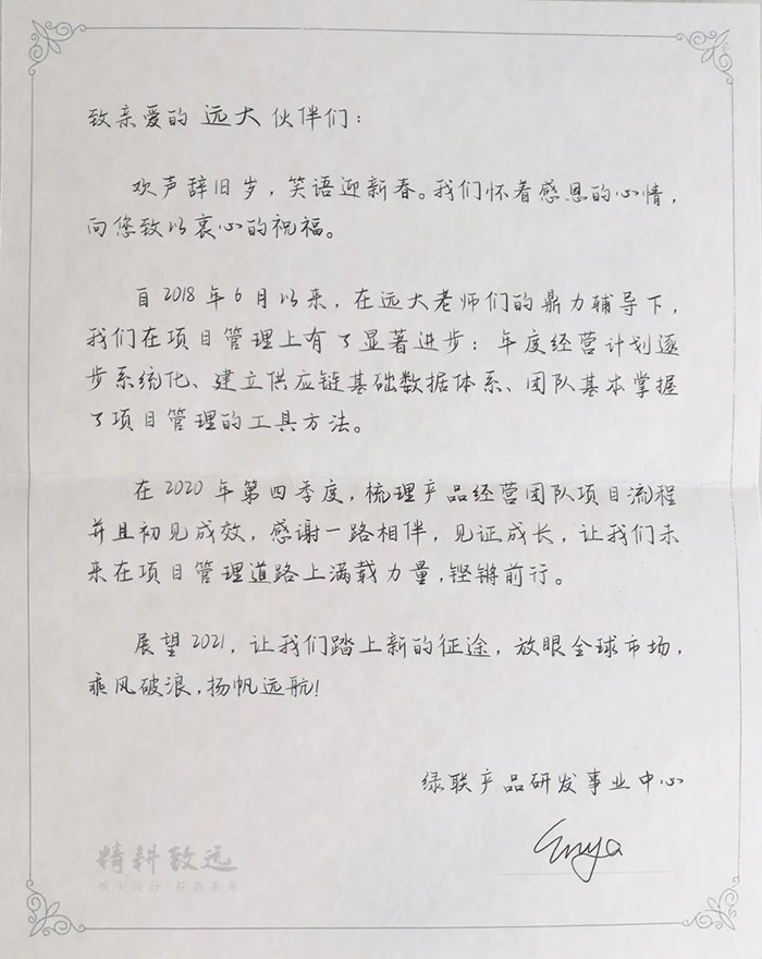▲綠聯(lián)科技至遠(yuǎn)大方略的感謝信