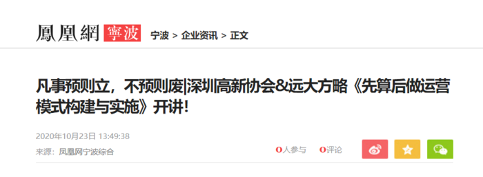 2020年10月21日下午,深圳市高新技術(shù)產(chǎn)業(yè)協(xié)會(huì)聯(lián)合遠(yuǎn)大方略管理咨詢集團(tuán)舉辦的《企業(yè)經(jīng)營(yíng)計(jì)劃與預(yù)算管理專題——先算后做運(yùn)營(yíng)模式構(gòu)建與實(shí)施》公益講座在深圳科學(xué)館1樓開(kāi)講,本次課程由遠(yuǎn)大方略聯(lián)合創(chuàng)始人、咨詢師雷志軍老師主講。