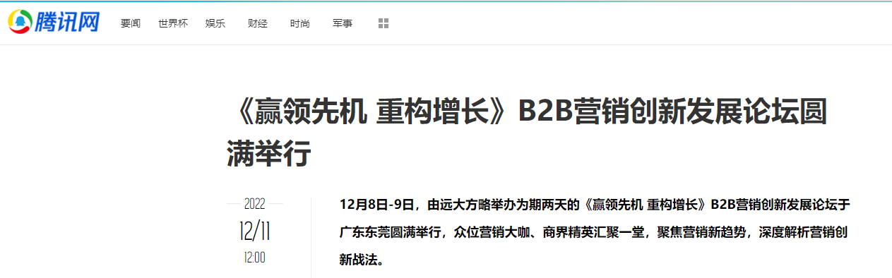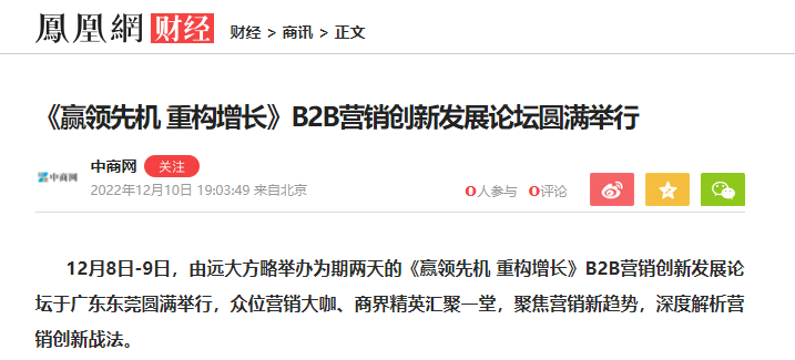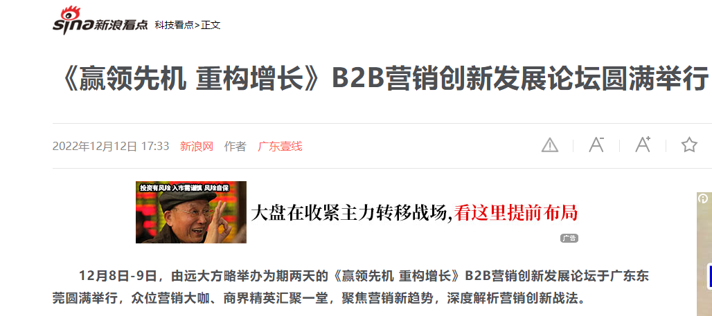 12月8日-9日,由遠(yuǎn)大方略舉辦為期兩天的《贏領(lǐng)先機(jī) 重構(gòu)增長》B2B營銷創(chuàng)新發(fā)展論壇于廣東東莞圓滿舉行,眾位營銷大咖、商界精英匯聚一堂,聚焦?fàn)I銷新趨勢,深度解析營銷創(chuàng)新戰(zhàn)法。