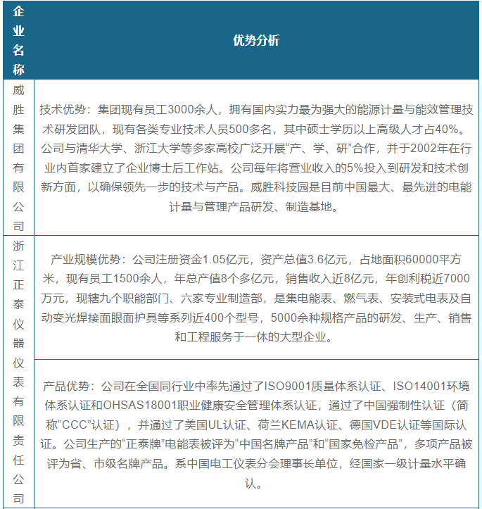 現(xiàn)階段,我國智能儀器儀表行業(yè)產(chǎn)業(yè)鏈中游優(yōu)秀企業(yè)主要包括威勝集團有限公司、浙江正泰儀器儀表有限責任公司、寧波三星醫(yī)療電氣股份有限公司、中航電測、漢威科技、柯力傳感等。