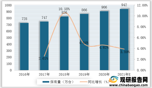 2016-2021年工程機械主要設(shè)備保有量、增速及預(yù)測