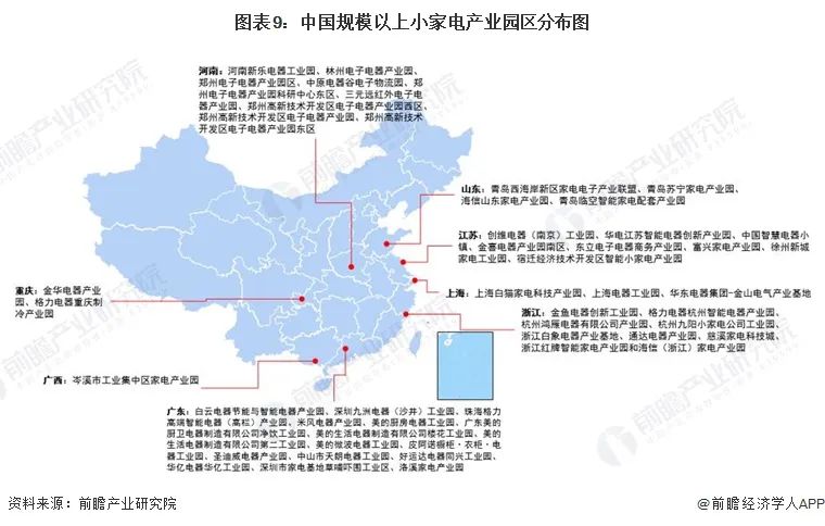 1、小家電產(chǎn)業(yè)園區(qū)集中分布在廣東、浙江