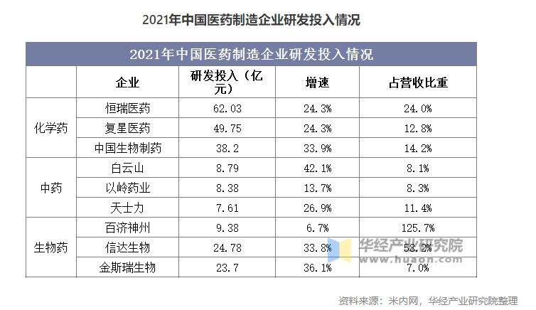 隨著藥品審評審批制度改革、國家醫(yī)保常態(tài)化調(diào)整等政策改革,“創(chuàng)新”逐漸成為藥企的發(fā)展理念。化學(xué)制藥行業(yè)正在發(fā)生結(jié)構(gòu)性變化,隨著仿制藥出現(xiàn)藥品價(jià)格持續(xù)下降的同時(shí),行業(yè)集中度也有望提升;中醫(yī)藥行業(yè)政策利好不斷,相關(guān)部門從市場準(zhǔn)入、醫(yī)保支付、審評審批等多個(gè)維度對中醫(yī)藥行業(yè)形成政策支撐,中藥原材料價(jià)格上漲對企業(yè)決策也造成一定的影響;生物藥雖然起步晚于化學(xué)藥,但近年來卻受全球藥企熱捧,成為藥企和投資者競爭的新方向,研發(fā)投入力度較大。
