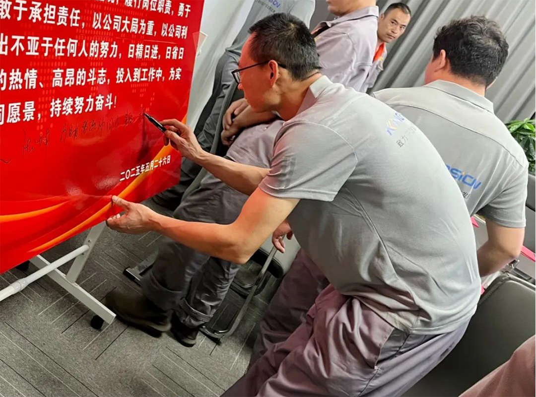 會(huì)上,于總為項(xiàng)目老師頒發(fā)了聘書,給項(xiàng)目關(guān)鍵人員頒發(fā)了任命書,帶領(lǐng)大家在誓言上簽下名字并集體宣誓。鼓勵(lì)大家積極投身變革提升能力,為公司持續(xù)發(fā)展增添助力。