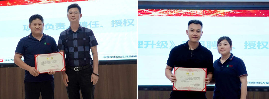 會(huì)上,潘總和李總對(duì)遠(yuǎn)大方略項(xiàng)目組進(jìn)行了聘用授權(quán),為項(xiàng)目小組關(guān)鍵人員頒發(fā)了聘書,并簽訂誓言集體宣誓,鼓勵(lì)大家全力以赴投身變革,共同創(chuàng)造更具競(jìng)爭(zhēng)力的企業(yè)。